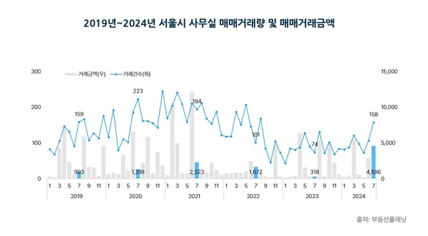 |스마트투데이=이재수 기자| 서울 오피스 시장이 6월의 반등에 이어 7월에도 상승세를 이어져 상승흐름을 탄 분위기다. 사무실도 거래량과 거래금액 모두 큰 폭으로 올랐다.