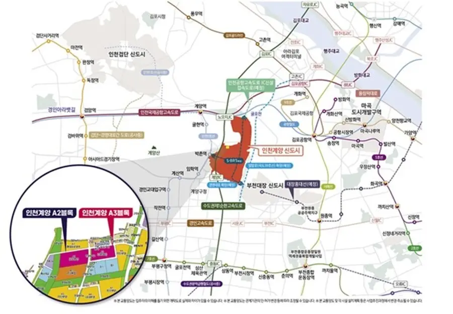 인천계양 A2·A3블록 공공분양이 위치한 인천 계양 테크노밸리는 서울 접근성이 좋고 교통, 교육, 생활 등의 인프라를 누릴 수 있다. 해당 아파트는 인천도시철도 1호선 박촌역을 가깝게 누릴 수 있고 수도권 제1순환고속도로, 인천국제공항고속도로 등의 이용이 수월하다. 경명대로, 벌말로 등을 통해 서울 및 인근 지역으로 이동도 용이하다.