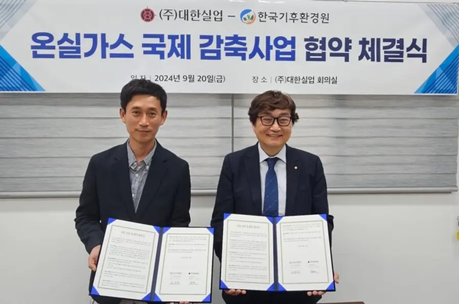 이날 대구 달서구 성서로에 위치한 대한실업 본사에서 전의찬 한국기후환경원장과 김정환 대한실업 대표 등 관계자들이 참석한 가운데 협약식이 진행됐다.