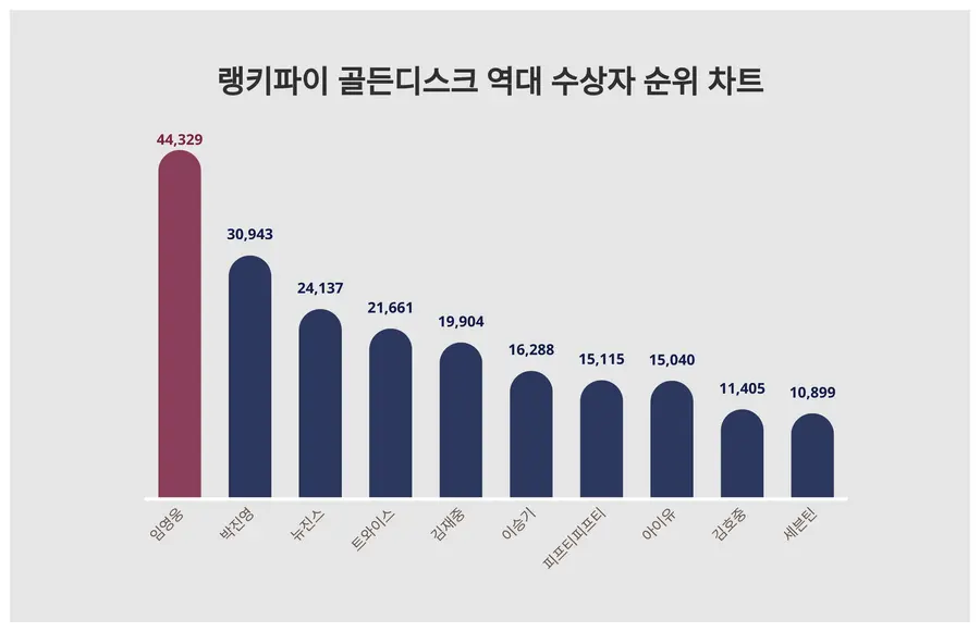 ▲골든디스크 역대 수상자 트렌드 지수 분석 결과 ⓒ랭키파이