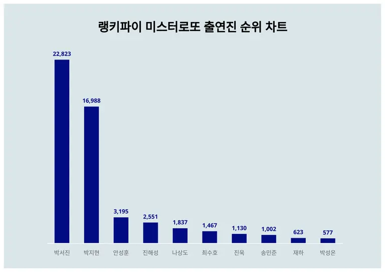 ▲미스터로또 출연진 트렌드 지수 분석 결과 ⓒ랭키파이