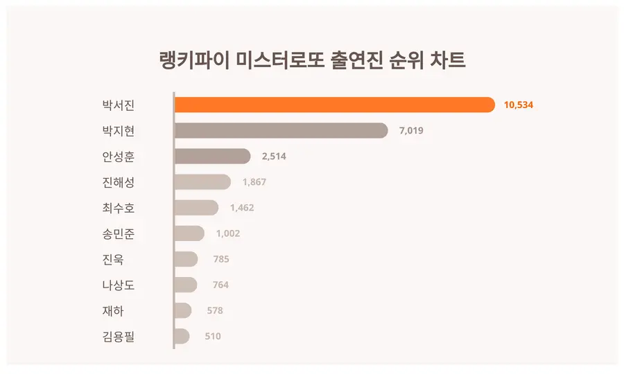 ▲미스터로또 출연진 트렌드 지수 분석 결과 ⓒ랭키파이