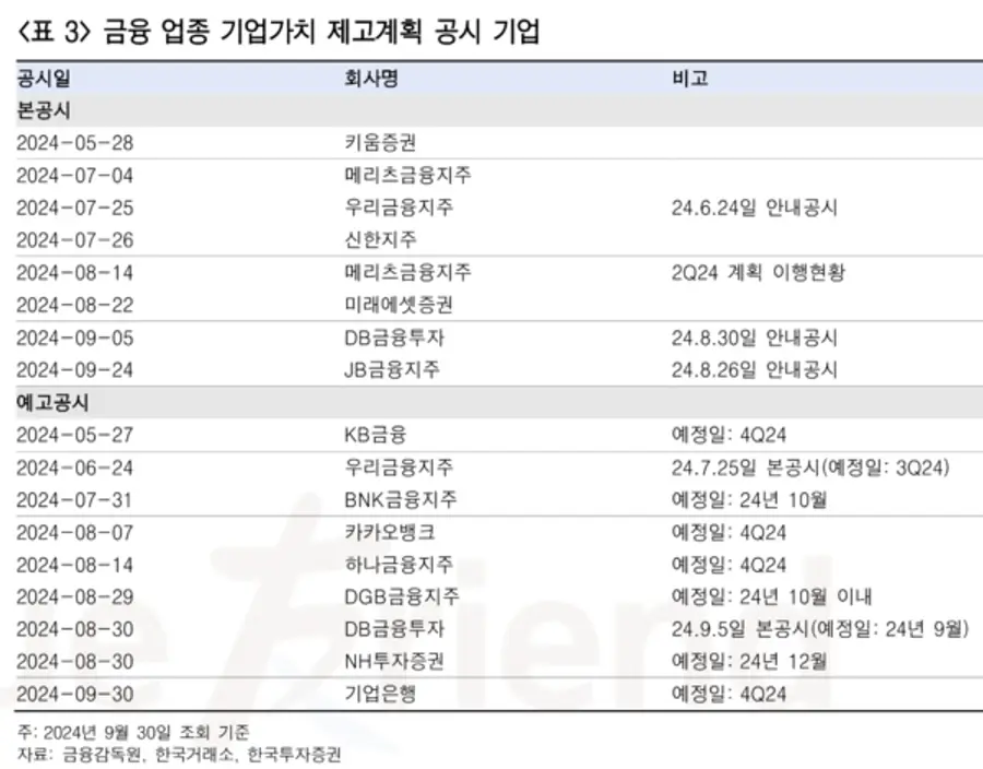 |스마트투데이=김국헌 기자| 한국투자증권은 은행업종 최고 추천주(Top Pick)로 밸류업 계획을 발표한 신한지주와 밸류업 계획을 곧 발표할 하나금융지주를 꼽았다. 올해 3분기에 은행업이 순이익 6조원을 올린 것으로 추산하고, 은행업 투자의견을 '비중확대'로 유지했다.