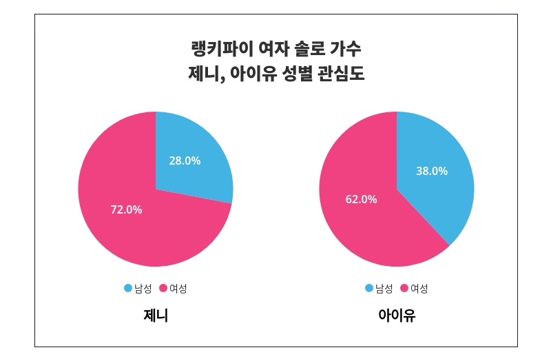 성별 관심도 조사 결과, 제니는 '여성'에서 '72%'로 남성보다 높은 관심을 받는 것으로 나타났다.