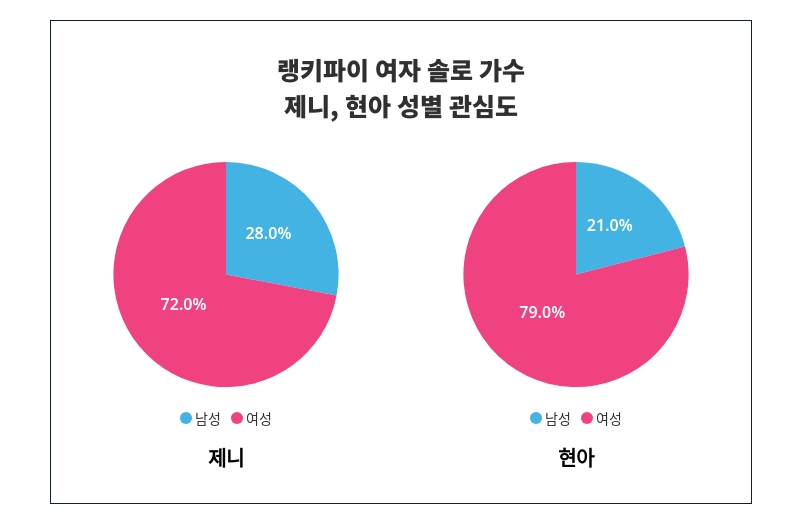 성별 관심도 조사 결과, 제니는 '여성'에서 '72%'로 남성보다 높은 관심을 받는 것으로 나타났다.