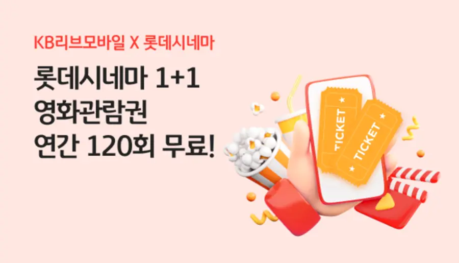 이 쿠폰은 롯데시네마 앱이나 홈페이지에서 하루 1회만 쓸 수 있다. 자세한 내용은 KB리브모바일 앱이나 웹페이지에서 확인할 수 있다.