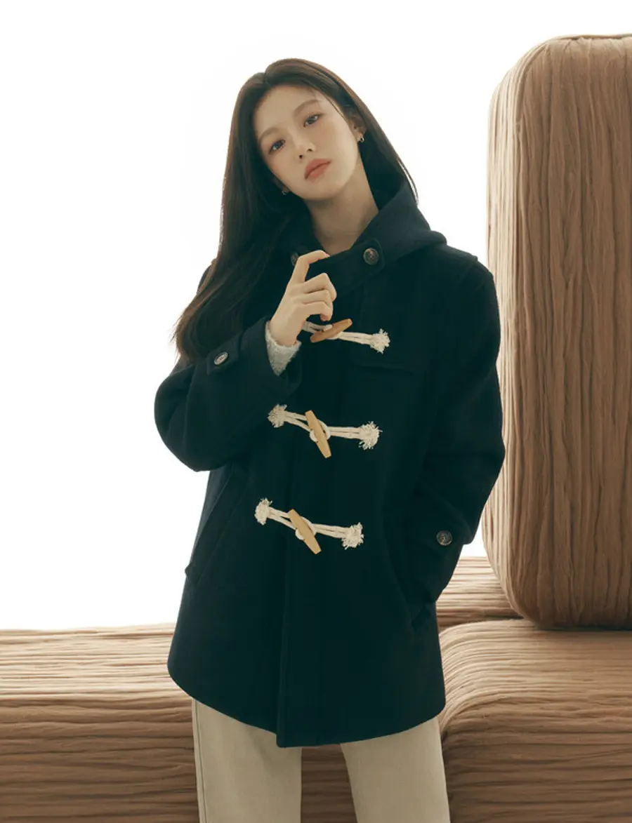 고윤정은 24일 공개된 화보에서 네이비 컬러의 더플코트와 세미 부츠컷 팬츠를 매치하여 클래식하면서도 세련된 룩을 보여줬다.
