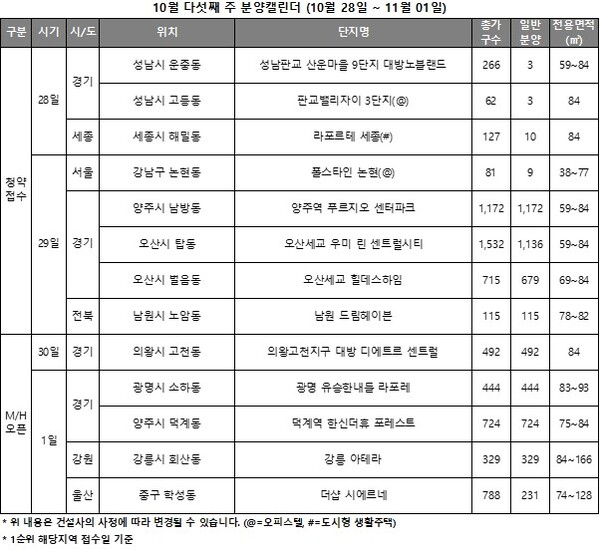 이 밖에도 서울 강남구에는 '폴스타인 논현' 오피스텔 9실과 지방에서는 전북 남원시의 '남원 드림헤이븐'(115가구)도 청약 접수를 받는다.