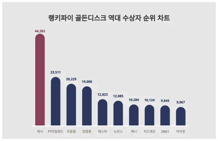 ▲골든디스크 역대 수상자 트렌드 지수 분석 결과 ⓒ랭키파이