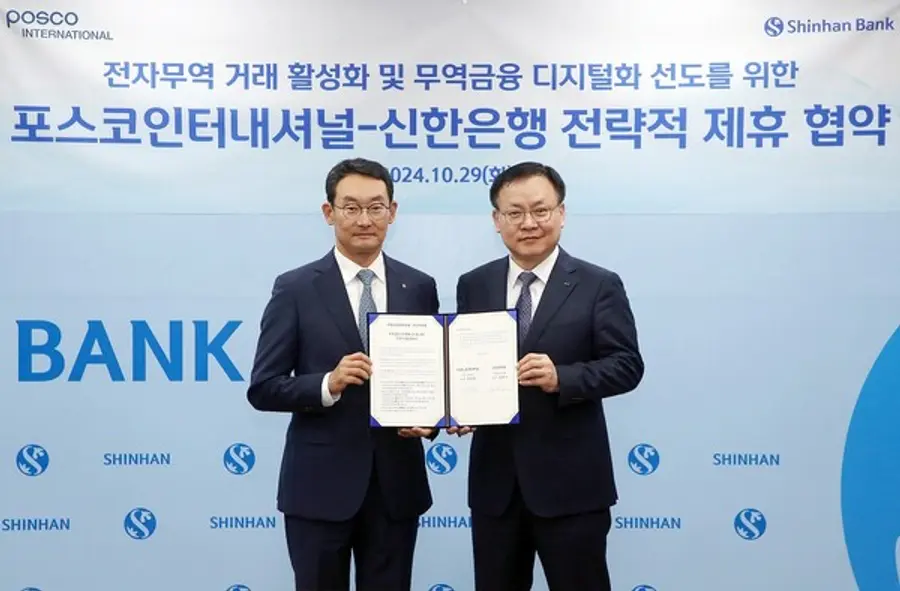 |스마트투데이=김국헌 기자| 신한은행은 지난 29일 서울 중구 본점에서 포스코인터내셔널과 ‘전자무역 거래 활성화 및 무역금융 디지털화 선도를 위한 전략적 업무협약’을 체결했다고 30일 밝혔다.