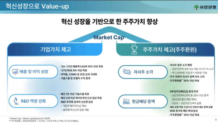 유한양행은 31일 내놓은 기업가치 제고계획을 통해 이같이 밝혔다.