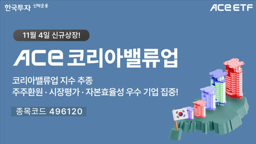 |스마트투데이=김윤진 기자| 한국투자신탁운용은 내달 4일 ACE 코리아밸류업 상장지수펀드(ETF)를 신규 상장한다고 31일 밝혔다.