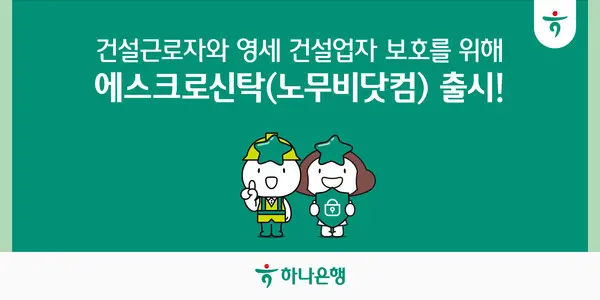 |스마트투데이=김국헌 기자| 하나은행이 공사대금을 에스크로(조건부 양도증서) 신탁으로 맡아서 보호해, 발주자부터 하도급기업까지 상생하는 건설생태계를 조성한다.