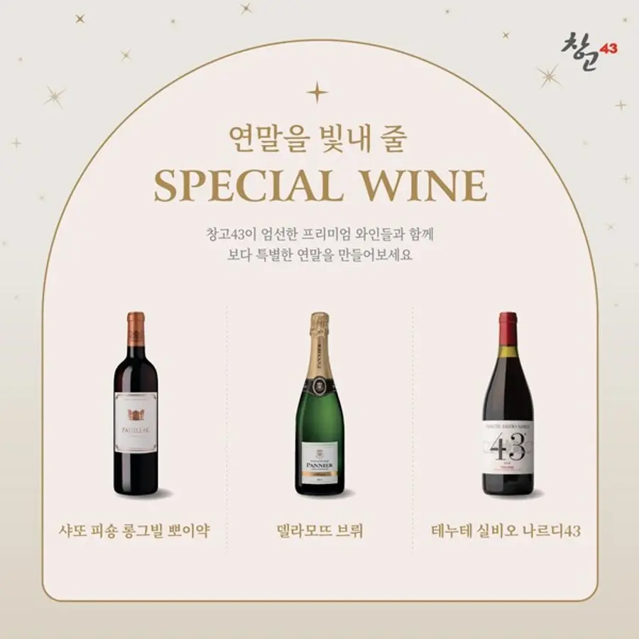 창고43은 프리미엄 한우에 잘 어울리는 와인 3종을 ‘연말 특별 와인’으로 엄선해 연말까지 최대 27% 할인한다고 6일 밝혔다.