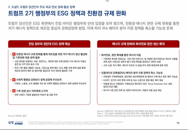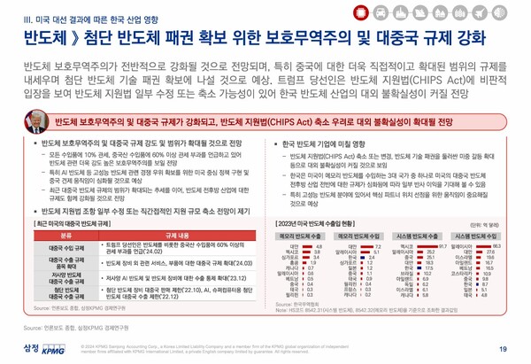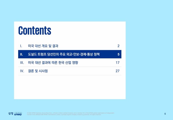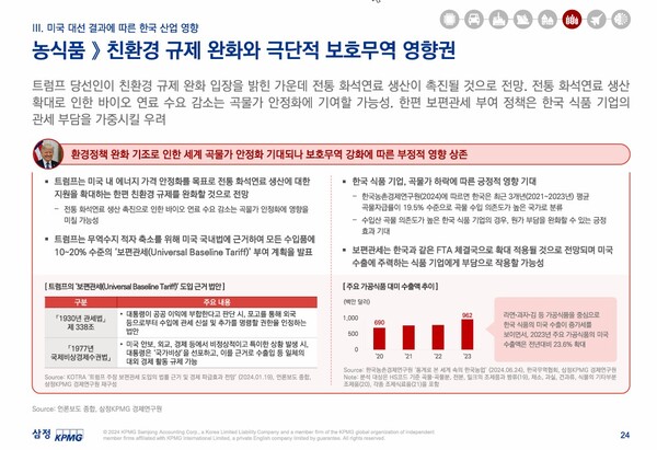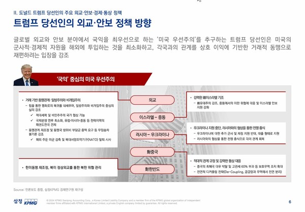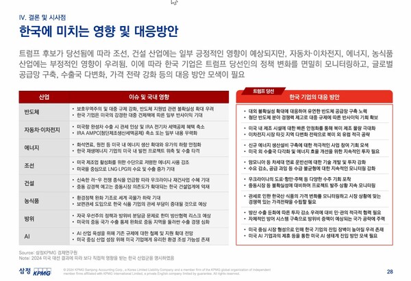다음은 삼정KPMG가 이날 발표한 '도널드 트럼프 대통령 당선과 국내 산업 영향' 보고서 전문이다.