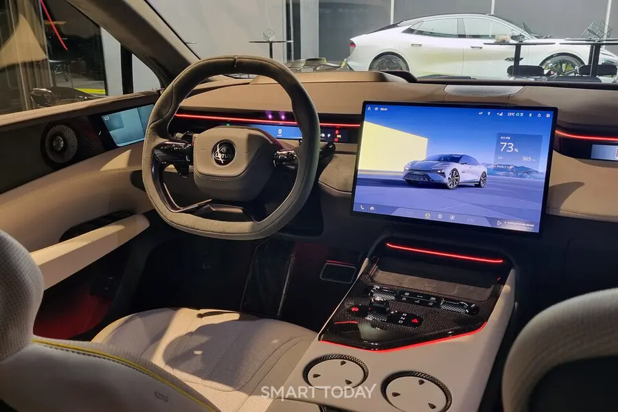 실내는 럭셔리와 고성능, 지속가능성의 키워드를 모두 충족한다. 나파 가죽과 정교한 금속 장식, 영국 KEF 프리미엄 오디오가 최상의 고객 만족도를 선사한다. 특히, 운전자는 로터스 하이퍼OS 인포테인먼트가 내장된 15.1인치 HD OLED 디스플레이에서 다양한 기능을 조작할 수 있다. 해당 시스템은 언리얼 엔진 게이밍 기술로 구동돼 운전자의 메뉴 조작에 빠르게 반응한다.