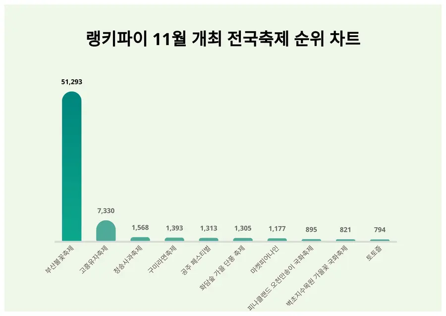 11월 2주차 기준 11월 개최 전국축제 트렌드지수 순위를 랭키파이가 알아봤다.