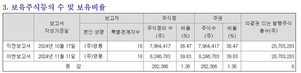 12일 금융투자 및 관련업계에 따르면 MBK파트너스의 특수목적법인(SPC) 한국기업투자홀딩스는 10월18일부터 11월11일까지 고려아연 지분 1.36%(28만2천366주)를 추가로 사모았다. 영풍·MBK 측이 확보한 고려아연 지분율은 39.83%로 늘었다.