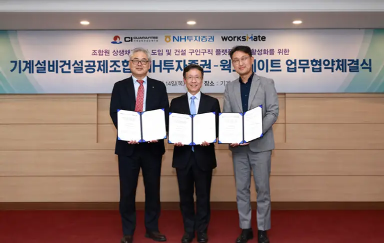 |스마트투데이=김세형 기자| NH투자증권(대표이사 윤병운)은 기계설비건설공제조합, 웍스메이트와의 업무협약을 체결하고 건설산업 내 공사대금과 관련한 문제 해결을 위한 지원에 나선다고 15일 밝혔다.