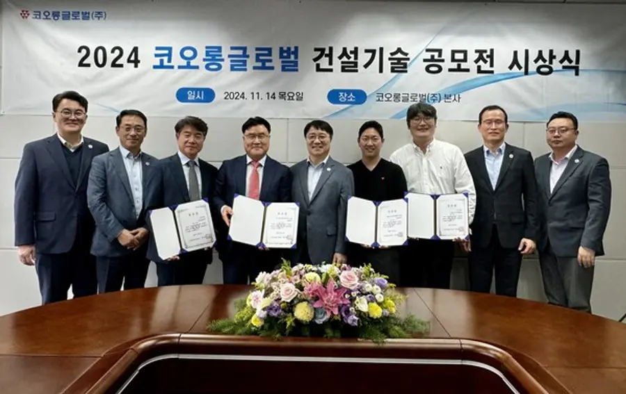 |스마트투데이=이재수 기자| 코오롱글로벌(대표이사 사장 김정일)은 미래 성장동력을 확보와 상생협력을 위해 주최한 ‘2024 코오롱글로벌 건설기술 공모전’의 시상식을 개최했다고 15일 밝혔다.
