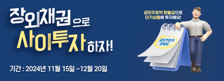 또 공모주 청약 환불금으로 다음 청약까지 짧은 투자기간에 채권이자 수익과 이벤트 리워드까지 받을 수 있다.
