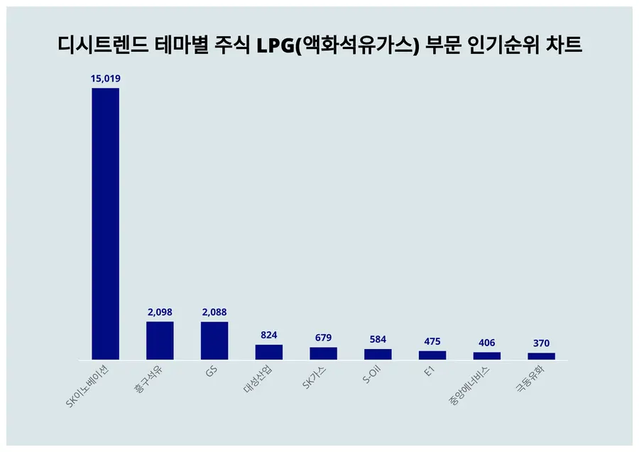 ▲테마별 주식 LPG(액화석유가스) 부문 인기지수 분석 결과 ⓒ디시트렌드