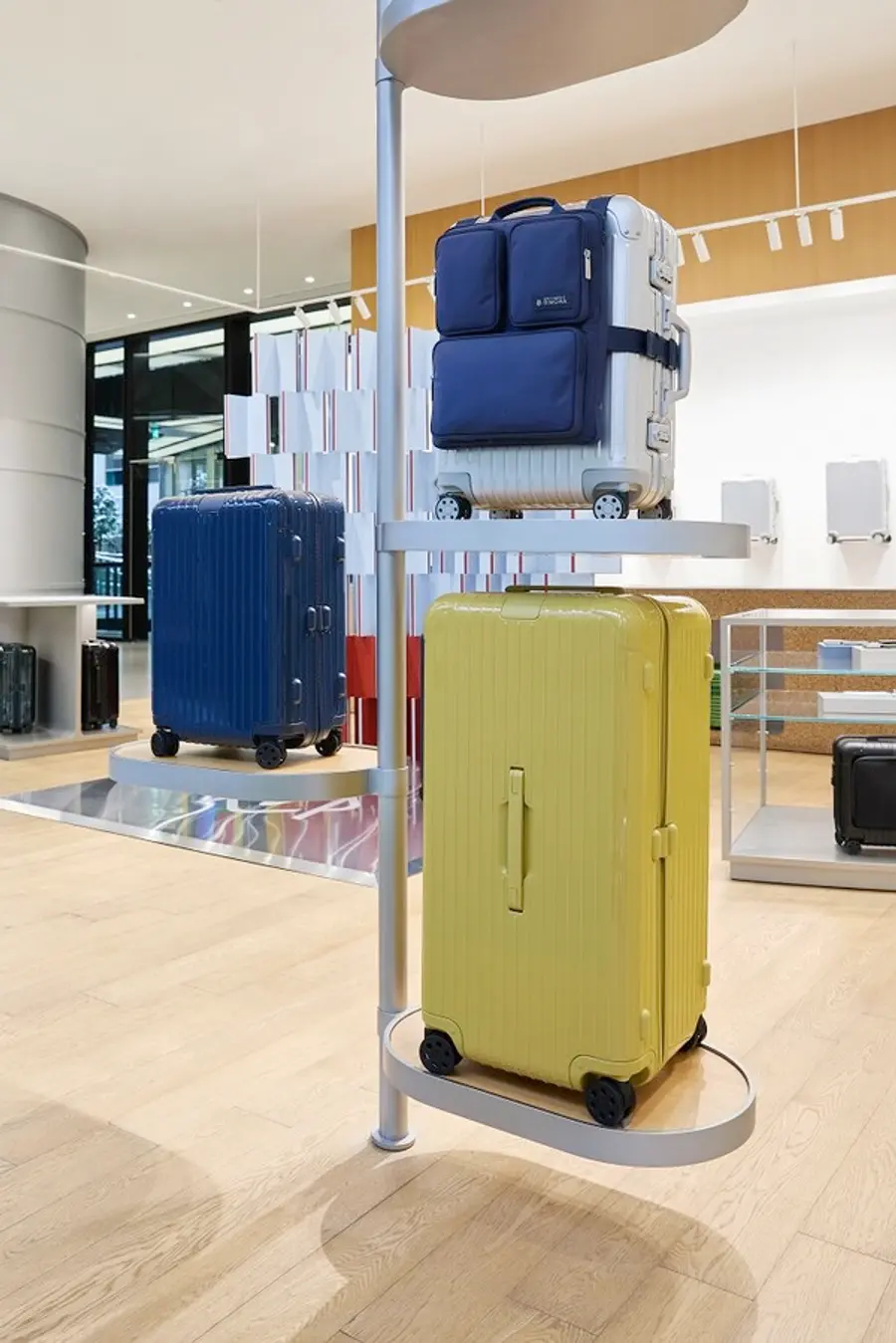 스칸디나비아 바다와 북유럽인들의 해양 정신에서 영감을 얻은 딥 미드나잇 블루 계열의 노티컬과, 코펜하겐의 유서 깊은 건축물을 연상시키는 따뜻하고 세련된 옐로 톤의 진저에서 언제나 유려하고 세련된 컬러 해석을 담는 리모와만의 특징이 느껴졌다. 프리뷰 이벤트를 맞이해 설치된 매장 중앙의 센터피스는 새로운 시즈널 컬러의 매력을 극대화하는 컬러 플레이를 담아냈다.