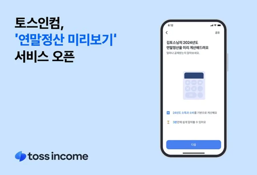 토스인컴 관계자는 “사용자가 연말정산 예상 결과를 간편하게 확인하고 대비 전략을 준비할 수 있도록 돕기 위해 연말정산 미리보기 서비스를 출시했다”며“토스인컴은 개인이 스스로 해결하기 어려운 세무 영역의 불편을 해소하고 누구나 쉽고 정확하게 세금 정산을 할 수 있는 세상을 만들어 가겠다”고 말했다.