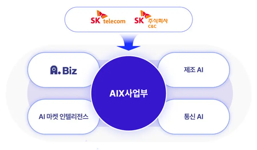|스마트투데이=이주영 기자| SK텔레콤(대표 유영상)과 SK C&C(대표 윤풍영)를 중심으로 진행 중인 ‘엔터프라이즈 AT TF(Enterprise AT TF)’가 ‘AIX사업부’로 정식 출범하고 AI B2B 사업 추진에 본격적으로 나선다고 10일 밝혔다.