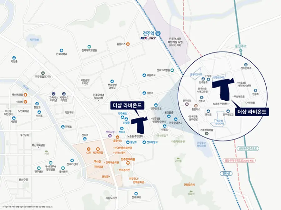 종광대2구역은 전주 시청과 전주역 사이 인후동 일대에 지하 3층, 지상 15층, 7개동에 530가구로 재개발된다. 동부건설이 2020년 12월 시공사로 선정됐다.