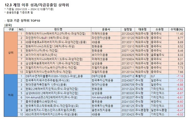 12일 스마트투데이가 펀드평가기관 KG제로인(대표이사 한수혁)에 의뢰해 탄핵 정국이후 주요 펀드와 ETF 상품의 수익률 상하위 상품을 조사한 결과, 중국펀드들이 수익률 상승 종목을 석권했다.