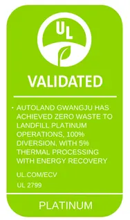 |스마트투데이=이주영 기자| 기아는 오토랜드 광주가 글로벌 응용안전 과학분야 선도기업 UL 솔루션스(UL Solutions)의 ‘폐기물 매립 제로’ 검증에서 최고 등급인 플래티넘을 획득했다고 13일 밝혔다.