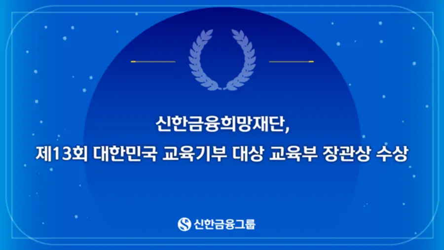 |스마트투데이=김국헌 기자| 신한금융희망재단은 지난 13일 경기 고양시 일산 킨텍스에서 열린 제13회 대한민국 교육기부 대상 시상식에서 교육부 장관상을 수상했다고 16일 밝혔다.