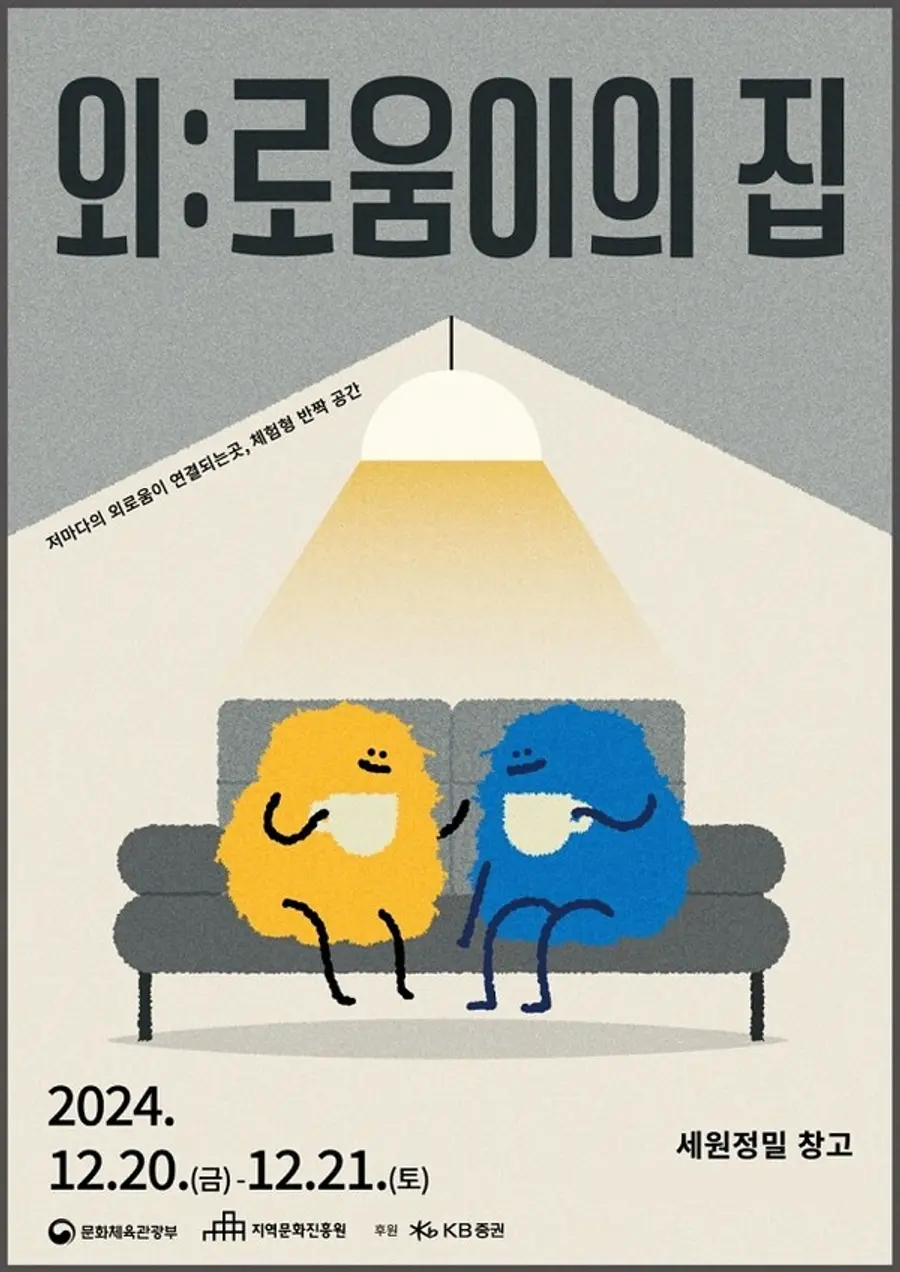 |스마트투데이=이은형 기자 | 문화체육관광부와 지역문화진흥원이 오는 20일부터 21일까지 이틀간 서울 성수동 세원정밀 창고에서 외로움을 주제로 한 체험형 공간 ‘외:로움이의 집’을 열고 다채로운 프로그램을 진행한다고 18일 밝혔다.