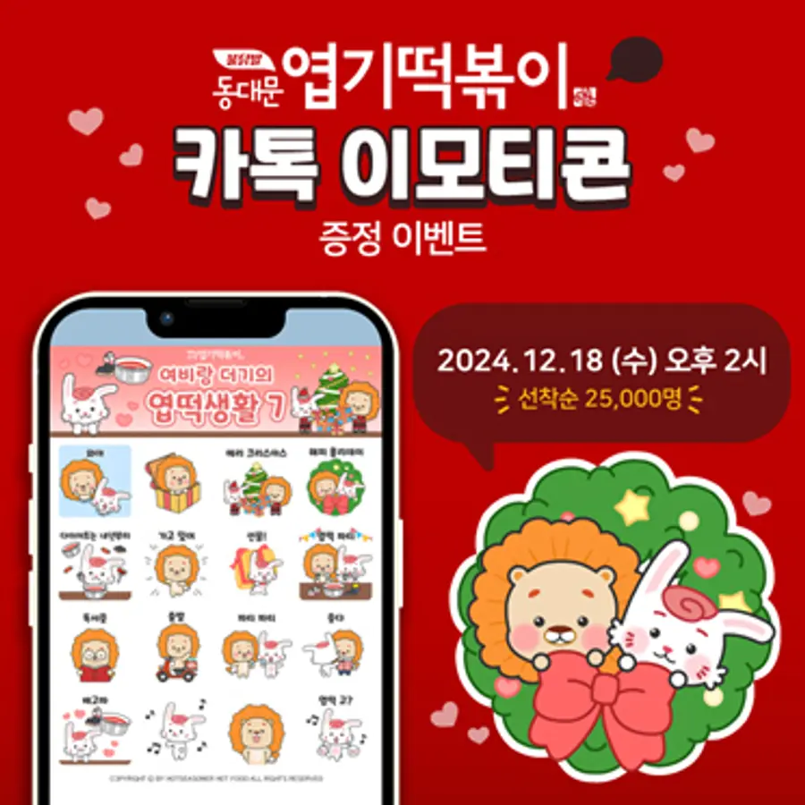 |스마트투데이=이은형 기자 | 동대문엽기떡볶이가 지난 18일 진행한 연말 맞이 카카오톡 이모티콘 증정 이벤트를 고객들의 뜨거운 관심 속에 성공적으로 마무리했다고 19일 밝혔다.
