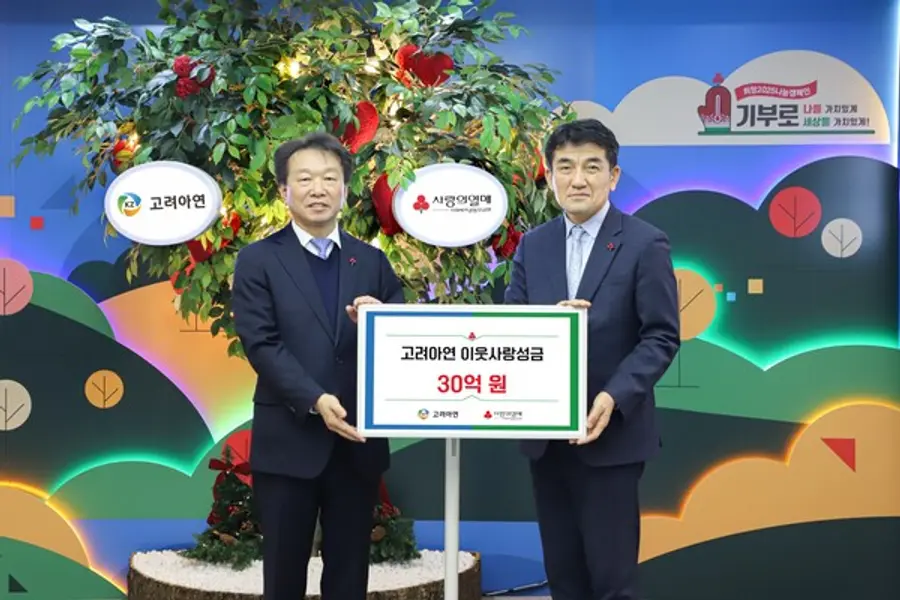 |스마트투데이=김세형 기자| 고려아연(회장 최윤범)은 연말을 맞아 사랑의열매 사회복지공동모금회에 이웃사랑 성금 30억 원을 기탁했다고 19일 밝혔다.