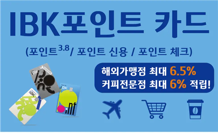 IBK포인트 카드는 신용카드 2종(IBK포인트•IBK포인트3.8)과 체크카드 1종 등 총 3가지로 구성했다.