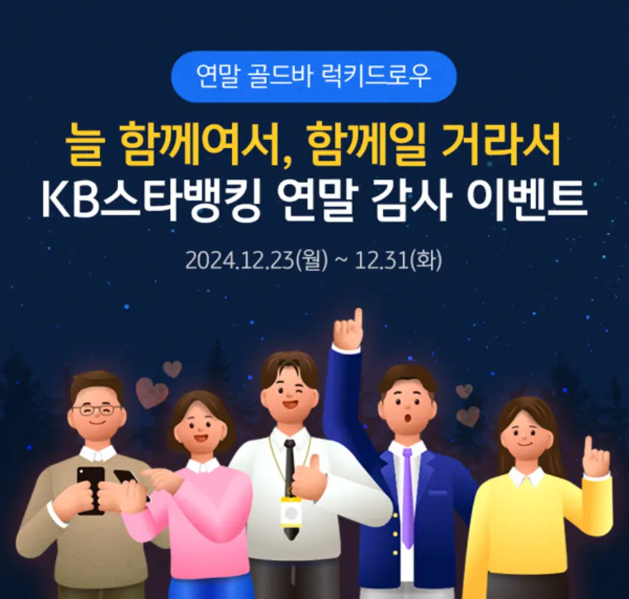 |스마트투데이=김국헌 기자| KB국민은행은 이달 말까지 KB스타뱅킹 앱 고객을 대상으로 고객 감사 럭키드로우 이벤트 ‘늘 함께여서, 함께일 거라서’를 진행한다고 23일 밝혔다.