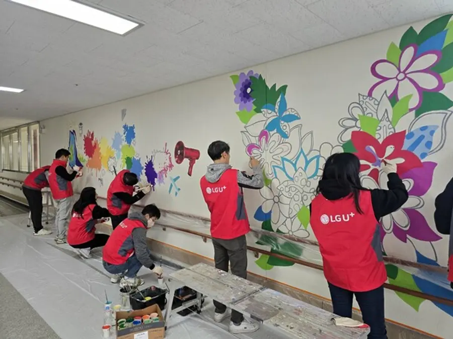 도서관이 설치된 학교에는 아이들이 희망찬 꿈을 꿀 수 있도록 LGU+ 임직원들이 봉사활동으로 벽화를 그리는 활동도 함께하고 있다.