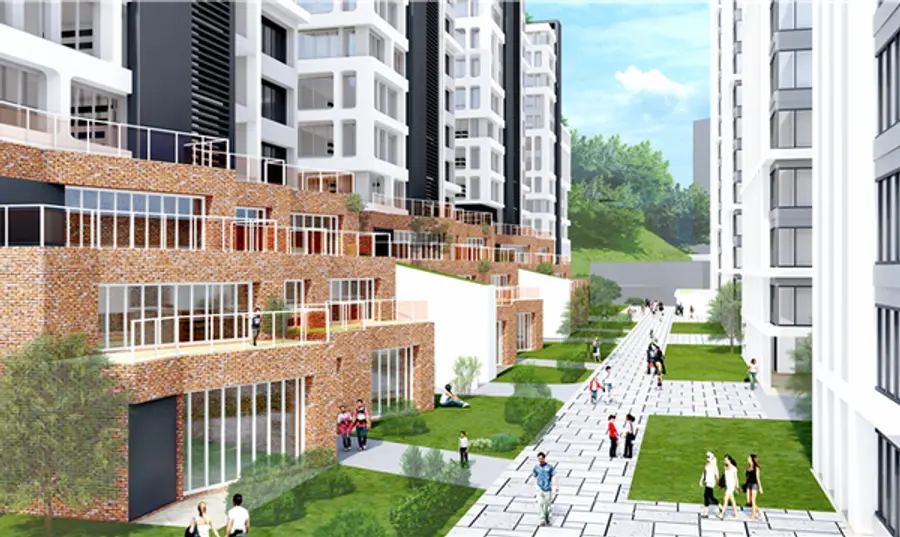 두 번째는 ‘지형을 극복·활용한 특화배치 계획’이다. 고저차가 약 35m에 달하는 급경사 지형을 이용해 테라스하우스 특화 주동을 배치하고, 경사형·수직형 엘리베이터를 적절히 배치해 무장애 보행환경을 제공한다. 또한, 단지 내 여러 공간에 정원과 클러스터 광장, 스텝가든 등을 배치하여 자연과의 조화를 이루는 설계가 특징이다.