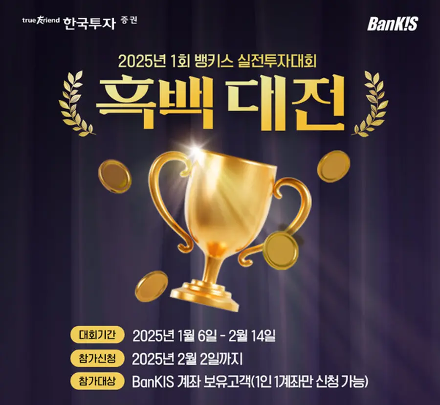 |스마트투데이=김세형 기자| 한국투자증권(사장 김성환)은 온라인 서비스 뱅키스(BanKIS) 고객을 대상으로 실전투자대회를 개최한다고 27일 밝혔다.