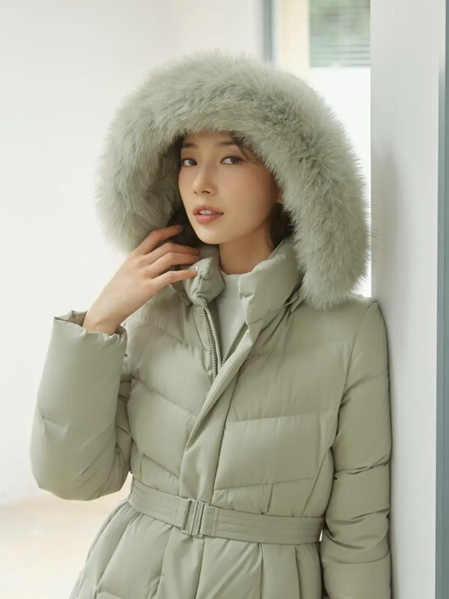 특히 메케니컬 스트레치 소재를 사용해 편안한 착용감을 제공하고, 유럽연합 인증을 받은 헝가리 구스 충전재를 적용해 가벼운 무게와 뛰어난 보온성을 자랑한다. 이외에도 깔끔한 외관을 위해 새로운 디자인의 벨트를 적용했고, 퍼 트리밍을 더한 후드는 와이어가 들어가 있어 다양한 퍼 스타일링 연출이 가능하다. 상단의 사선 퀼팅과 밑단 절개 디테일은 날씬한 실루엣을 살려준다.