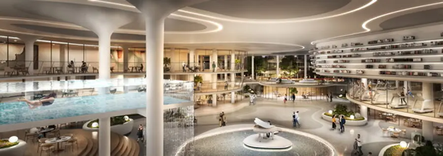 특히 단지 중심인 32블록에는 약 4000평 규모의 센트럴 커뮤니티가 조성된다. 커뮤니티 층고는 아파트 3개층에 해당하는 11.6m로 기존 단지보다 수미터 높아 개방감을 극대화 하고 자연채광이 가능하도록 했다.