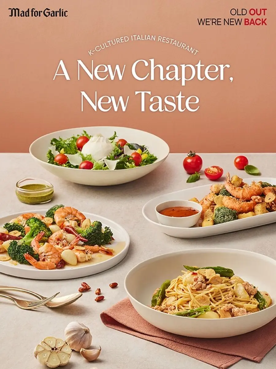 매드포갈릭은 새해를 맞아 ‘과거의 것을 버리고 새로운 모습으로 돌아왔다’는 의미를 담은 ‘OLD OUT, WE’RE NEW BACK’ 캠페인과 함께 기존 메뉴의 업그레이드 버전인 ‘갈릭 명란 파스타’, ‘슈림프 갈리올리오’, ‘쁘띠 부라타 바질 샐러드’와 사이드 메뉴에서 메인 메뉴로 변신한 ‘갈릭 슈림프 프리또’ 등 4종을 새롭게 출시한다고 밝혔다.