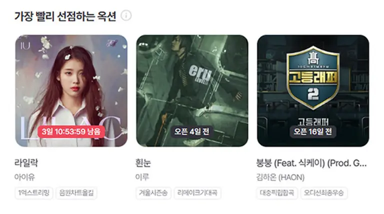 |스마트투데이=김세형 기자| 음악투자 플랫폼 뮤직카우가 1월 옥션으로 꾸준한 저작권료 흐름이 기대되는 명곡들을 연이어 선보일 예정이다. 9일 종료되는 아이유의 ‘라일락’부터 10일엔 이루 ‘흰눈’, 22일엔 김하온 ‘붕붕’ 옥션을 새롭게 오픈하며 장르를 넘나드는 투자 기회를 제공한다.