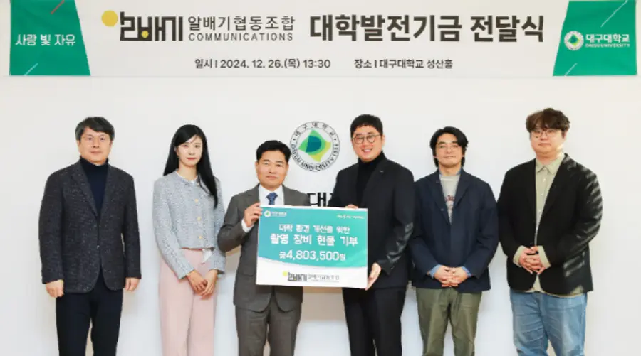 |스마트투데이=김윤진 기자| 고용노동부의 인증을 받은 사회적기업인 알배기협동조합이 대구대학교의 발전과 교육 환경 개선을 위해 대학 발전기금을 현물로 기부했다고 7일 밝혔다.
