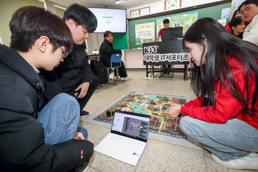 올해 첫 ‘찾아가는 AI 교육’에서 KIT 봉사단원들은 영흥중학교 3학년 학생들에게 AI 코딩 플랫폼과 코딩 로봇으로 실습교육을 함께 하고, 올바른 AI 활용과 디지털 윤리에 대한 토론도 진행했다.