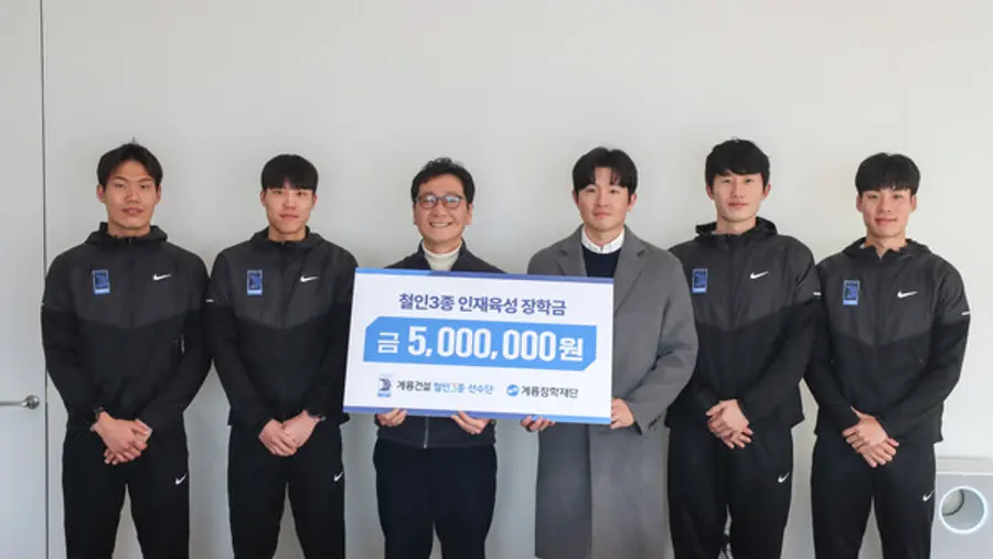 |스마트투데이=이재수 기자| 계룡건설 철인3종 선수단이 철인3종 인재 육성을 위해 500만원의 장학금을 기탁했다.