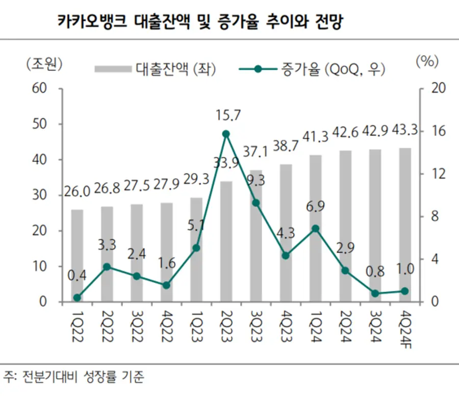 하나증권은 작년 연간 실적 전망치를 전년 대비 22% 증가한 4330억원으로 예상했다. 카카오뱅크의 지난 2023년 순이익은 3549억원이다.