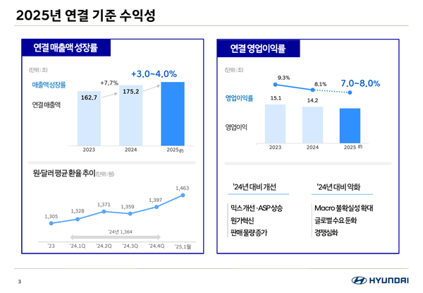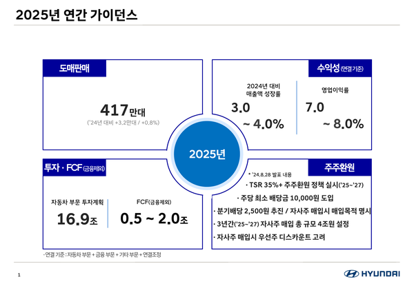 현대차는 23일 지난해 실적 발표와 함께 올해 실적 가이던스를 제시했다. 증권가의 예상치에 부합하는 수준이다.